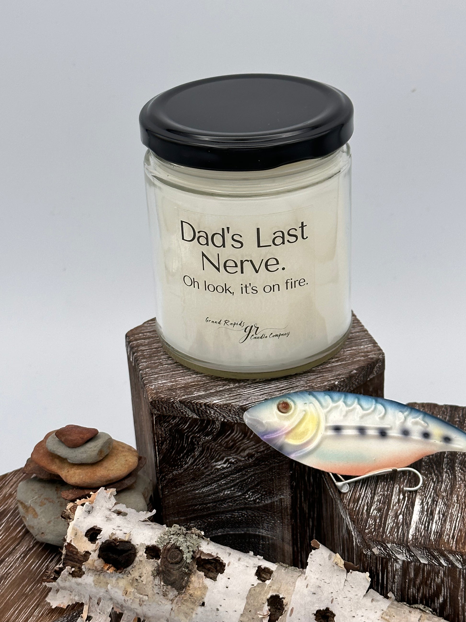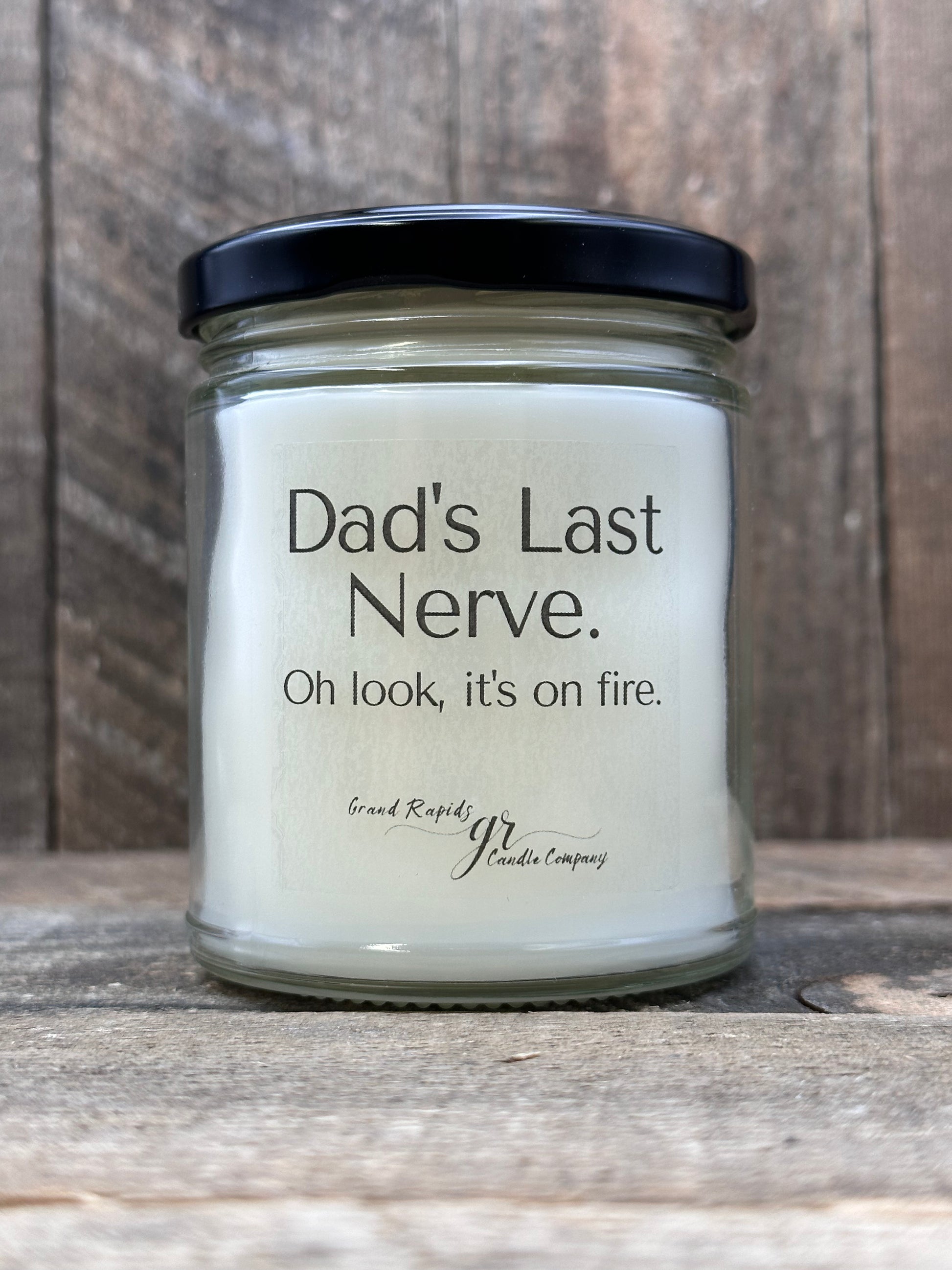 Dad's last nerve. Oh look, it's on fire. 9oz Soy Blend Candle